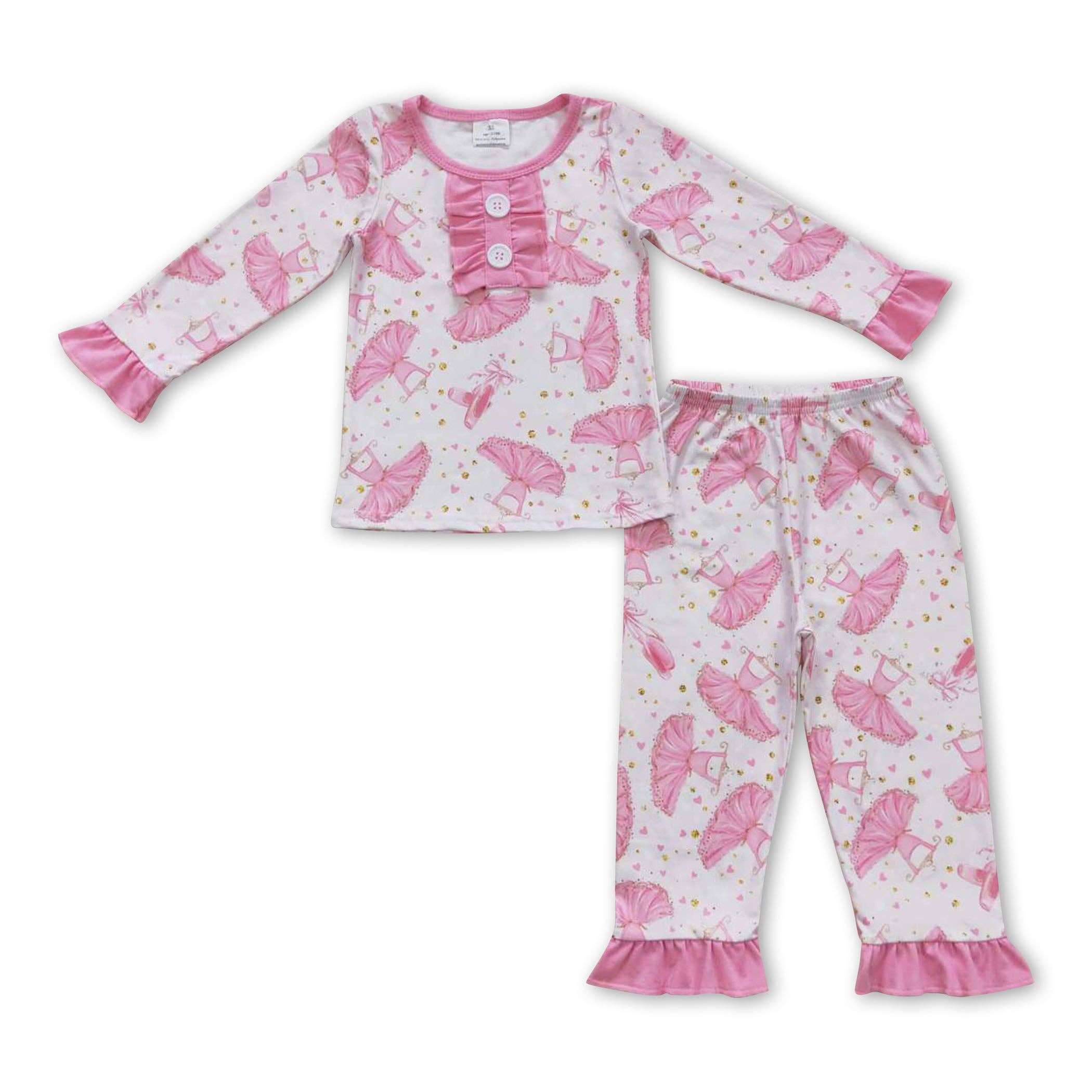 Wholesale SoftSnooze™ Toddler Girls Cotton Modal Sparkle Pink Tinsel Tidings Ruffle Long Sleeve Pajama Set with Signature Rear Ruffles