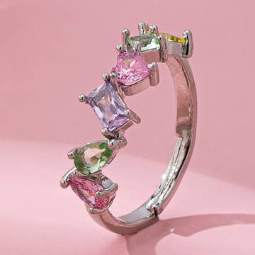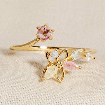 These are beautiful adjustable rings created using plated brass, lab opals, and cubic zirconia. The rings come in one size, 6-9 US ring sizing. Each one can be stretched a bit larger comfortably I am sure, but I can't guarantee that the ring won't face any structural fatigue so to speak. Rings are brass material with rhodium plating (silver) or 18k gold. "Midnight Springs" is engraved in the interior of the band. Rhodium plating is .1 micron thickness, while the 18k gold is 1 micron thick. Rhodium is much more expensive, sturdy, and structurally sound than gold alloys to begin with, so it is already very durable at that thickness. I myself have tested these rings with daily wear and sleep for weeks without issue. To ensure longevity, take care not to wear in shower or hold sharp and heavy objects while wearing (ie relocating