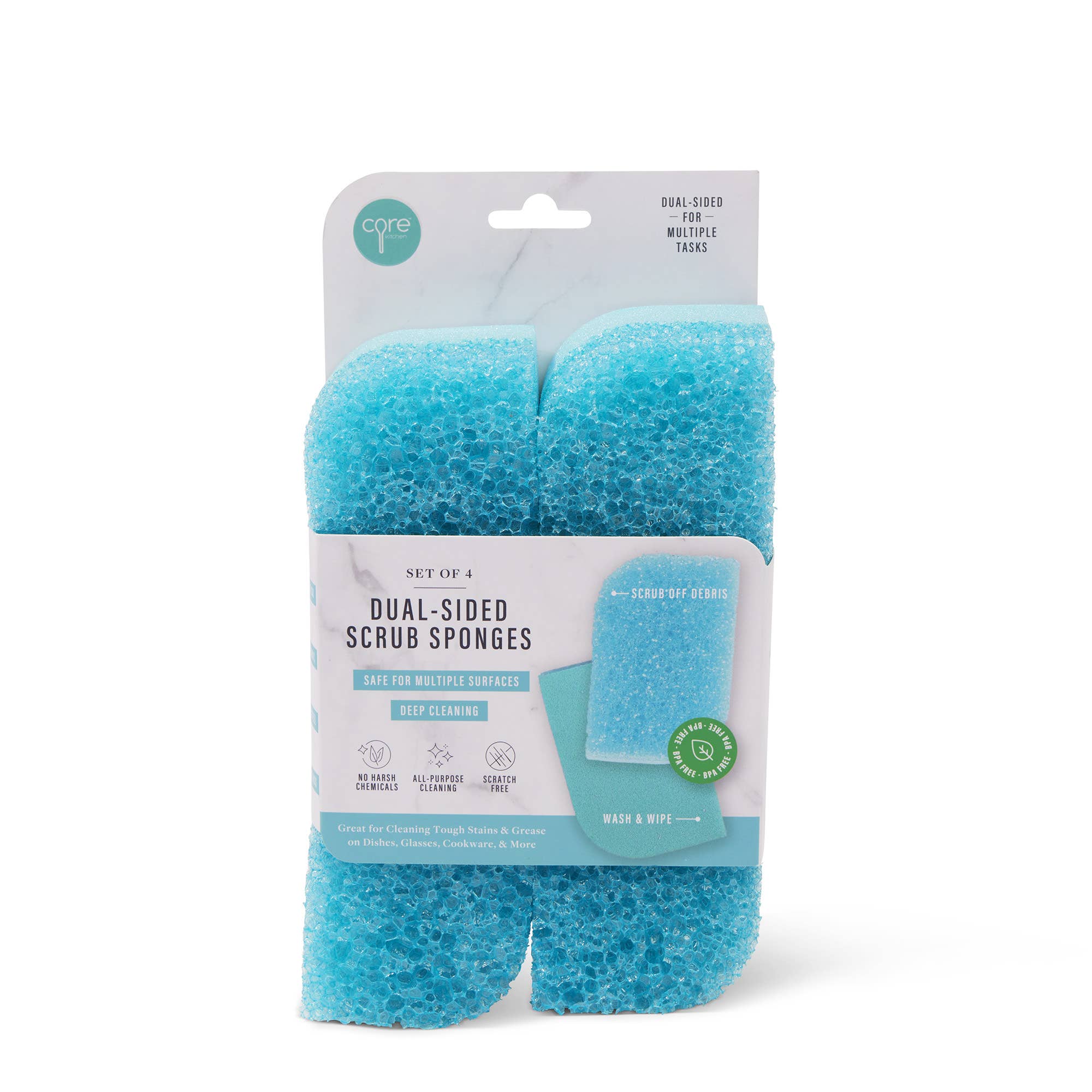 Fred’s PERCHED sponge set contains 4 modern design sponges that perch on a “branch” to dry out. Packed in a peggable color box, each set contains 4 multi-layer sponges, 1 suction cup, and 1 wooden perch.