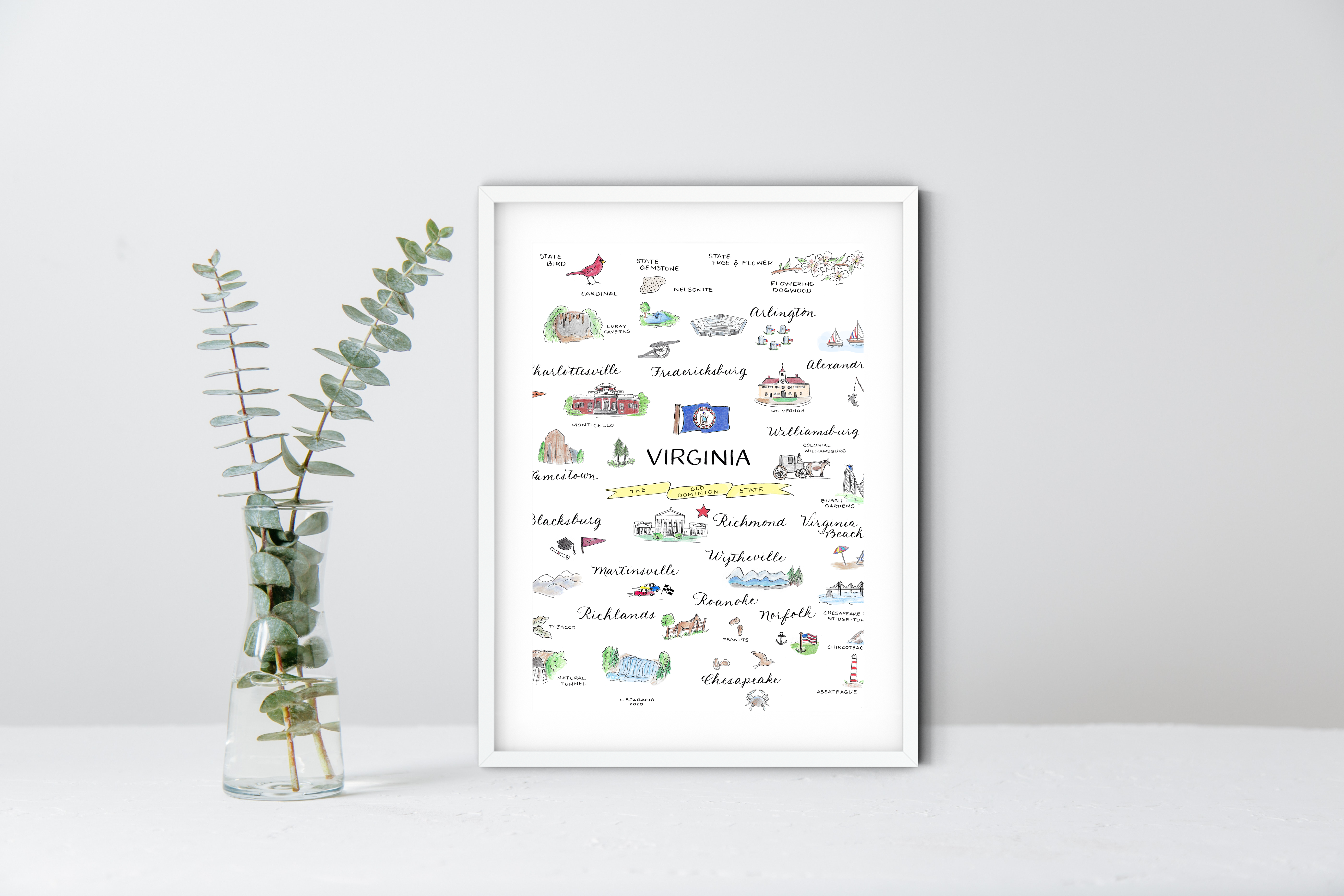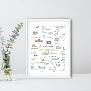 Maryland Counties // 8x10 Art Print Each art print is professionally printed on 110# silk coated cover stock, achieving vibrant and well-saturated colors. Prints are packaged with a 1/16” backing board in a clear plastic art sleeve and include an info insert in the back with details about the artist and print size. All Billie Claire wholesale prints arrive unframed, but our print sizes match standard US frame sizes, so there is no custom framing needed for your customers. For online sales, these prints ship well in a flat chipboard mailer. This original design was hand drawn with pencil and pen, and all Billie Claire products are printed in the US / designed and assembled in Richmond, Virginia. - Print description: A state map of Maryland depicting hand lettered counties on a background with a subtle Maryland state flag.