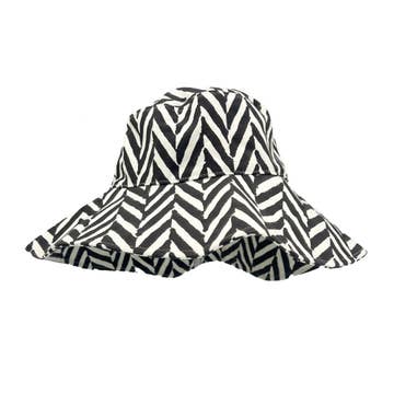 The women's Rachelle sun hat has an allover print that's fun and cheery from day one of summer. This bucket hat packs down easily in a bag, bike basket or suitcase if you're vacation-bound. The adjustable chin cord is removable for a more minimalist approach, and grommet holes up top add some cool airflow on a hike, in the garden or exploring new-to-you neighborhoods or naturehoods. * Full brim for sun protection, crown grommets for ventilation * Two-tone print, packable * Adjustable and removable chin cord with wooden bead * Cotton * Brim length: 6.5 cm/ 2.5" * Unlined with custom seam tape * One size