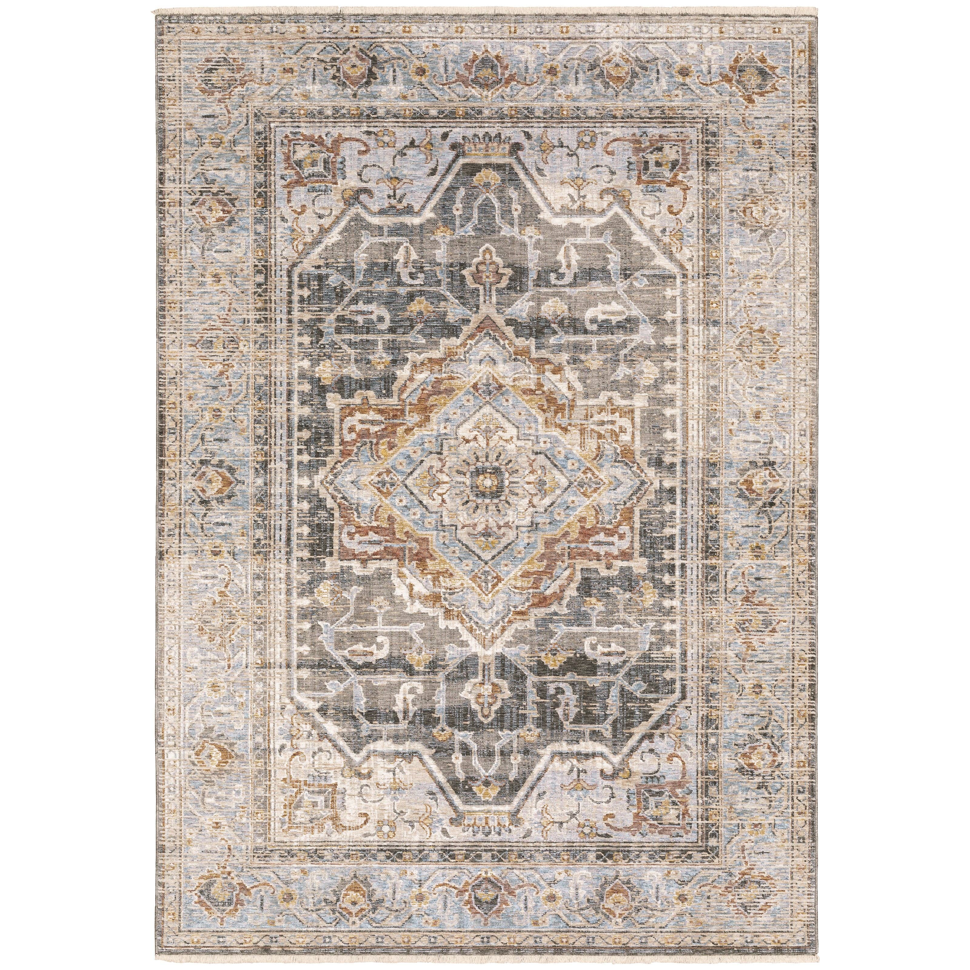 Inspired by traditional tribal designs, this Rustic Southwestern Floral Medallion Area Rug showcases a repeating geometric and floral motif with a balancing border and delicate fringe for an extra touch of texture. The distressed display of desert hues in red, yellow, orange, and blue gives this area rug a rustic boho-chic appeal. This power-loomed rug is perfect for busy homes and high traffic areas with its easy-to-clean features and durable construction. 100% Polypropylene with Cotton Backing Power-Loomed in Turkey Available Sizes: 5' x 8', 7'9" x 10' No Warranty