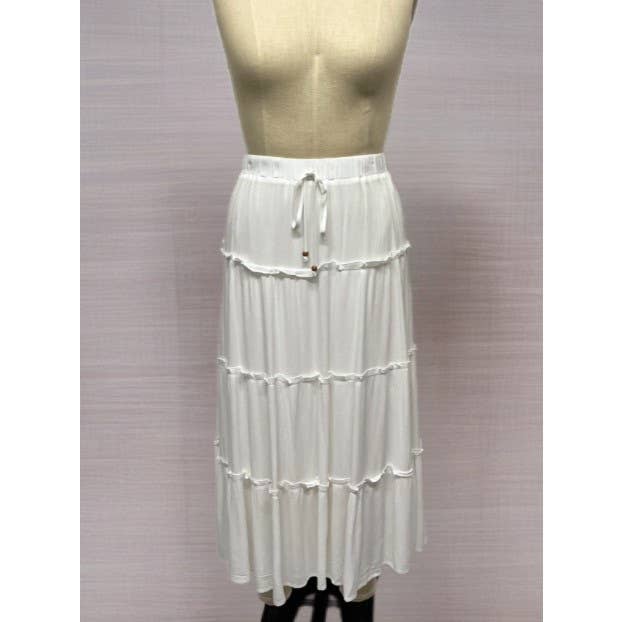 SKU: PC325-5 Made in China Care Instructions: Hand wash Color: White Embellishment: Ruffles Fabric: polyester Fit: Contemporary and Junior Pattern: Solid Skirt & Dress Length: Maxi Skirt Style: Tiered Weight: 2.27 kg (5 lb)