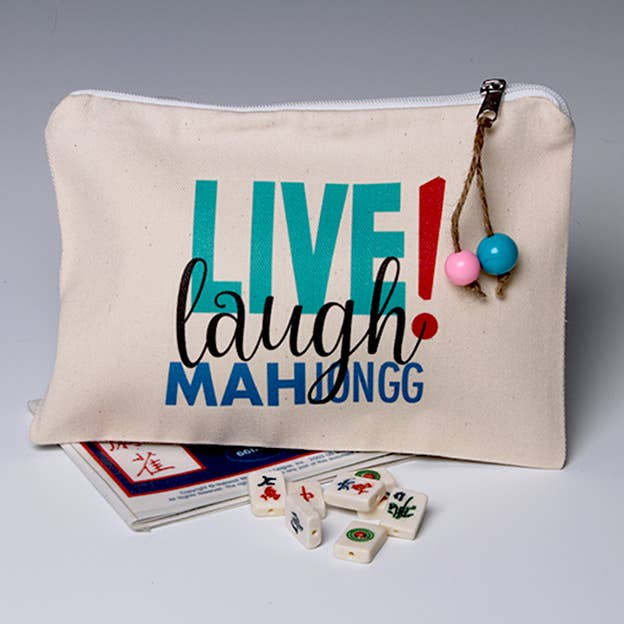 Who doesn't love Mah Jongg? A FUNctional gift, this cotton pouch is just perfect for cosmetics, change, car keys, odds and ends & all your stuff...Small pouch is unlined and measures approximately 6.75" x 4.5". Image is printed on one side.. Image is printed on one side. Can be personalized on reverse side. Packaged in a cellophane bag. These pouches are designed and hand-printed in my NJ studio.
