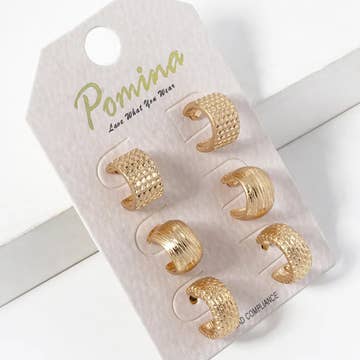 This set of earrings features a fashionable five pair assorted hoop earrings set style. Celebrate individuality with this set of earrings that effortlessly expresses your unique sense of style. 100% ALLOY