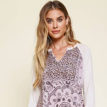 Wholesale Sequins Contrast Tie Dye Anumal Print Mix Top
