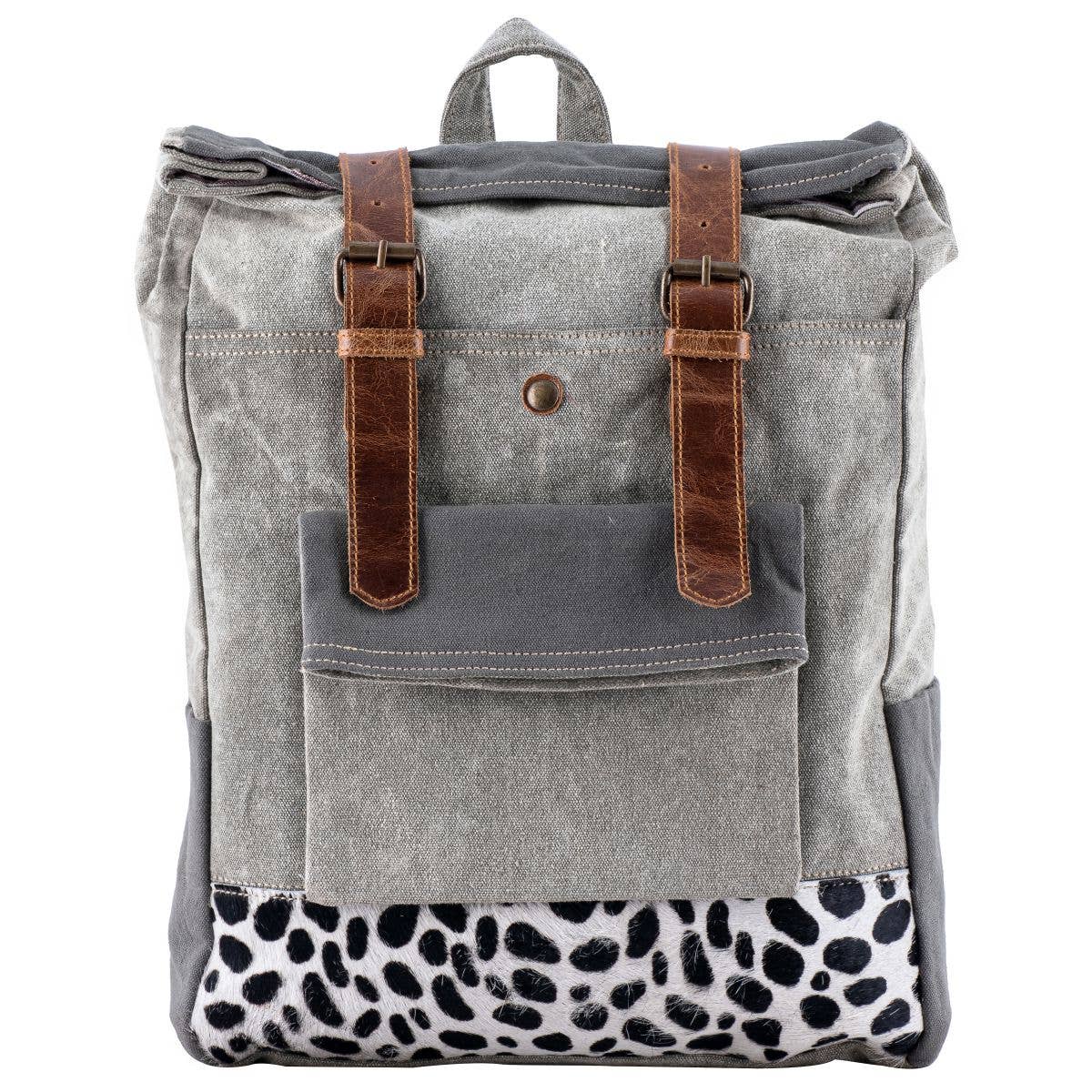 Clea Ray Canvas Bags & Clothing presents the Flower And Leather Backpack, a perfect fusion of style and practicality. With dimensions of 9" x 9" x 4", this women's backpack offers ample space for your daily essentials. Crafted from repurposed materials, it reflects our commitment to sustainability. This backpack is more than just an accessory; it's a statement of your eco-conscious lifestyle.