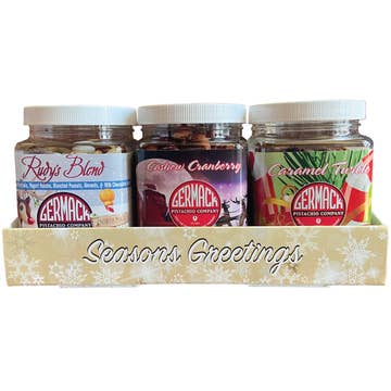 Made in United States Contains: Peanuts, Soy, Tree nuts, and Wheat Diet: Alcohol-free, Dairy-free, Vegan, and Vegetarian Ingredients: Raw Almonds, Cashew, Roasted & Salted Pistachios In Shell, Walnut Halves, Dried Apricot, Dried Raisins Shelf life: 12–24 months Storage: Shelf-stable UPC: 810013224238