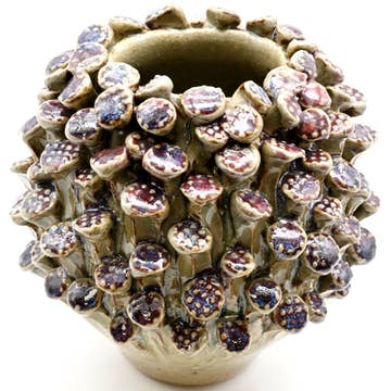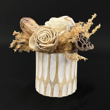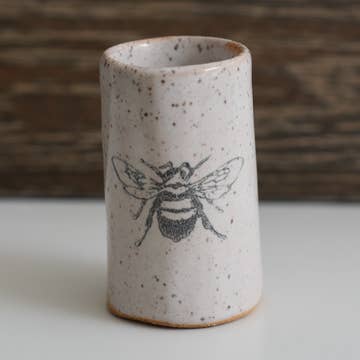 Show off your mini orchid plant in a sweet little honeybee vase. Created by our ceramic artisan partners in San Juan de Oriente Nicaragua, each piece is thrown on a non-electric kick wheel, etched with a bicycle spoke, and finally wood kiln-fired. For decorative use only. 2.25" wide x 3" tall. Fair trade.
