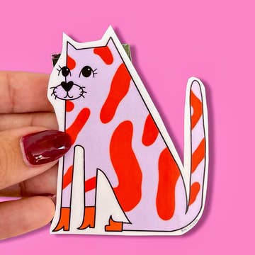 A HOLOGRAPHIC version of our Cute Cat sticker! Become hypnotized by the rainbow moving across a shiny silver background. These high quality vinyl, die cut stickers feature a premium coating that protects them from exposure to wind, rain and sunlight. You can even put them in your dishwasher and have them come out looking brand new! Pink printing on holographic stock. 3x3 inches