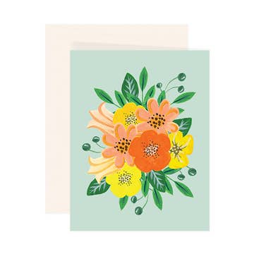 Illustrated card from our Floral collection with a print on thick card stock. Dimensions: 4.25" x 5.5". Blank inside. Soft white envelope included (A2).
