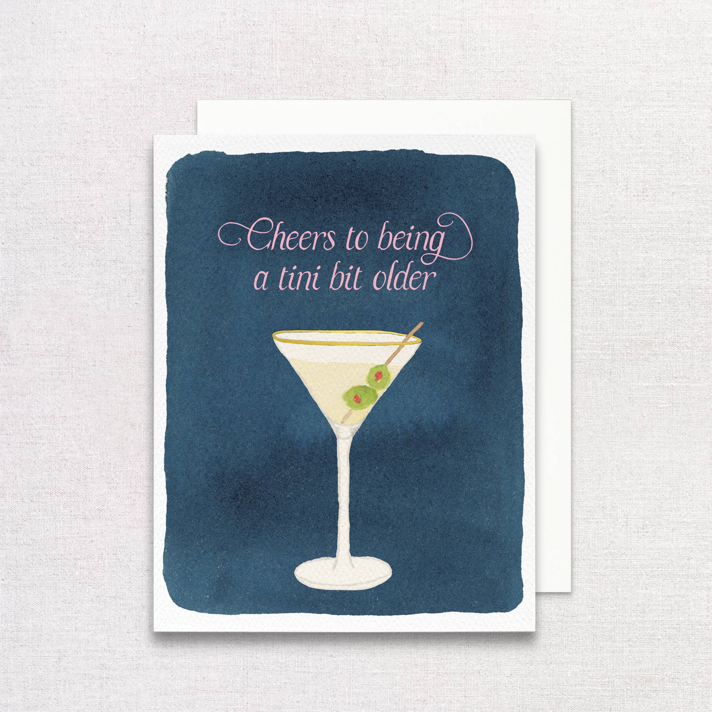 Glug glug! Unsleeved, due to greetings on inside and back of card. Sleeves available upon request at no additional cost. Paired with metallic brown envelope.