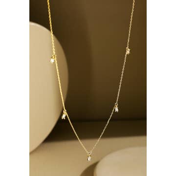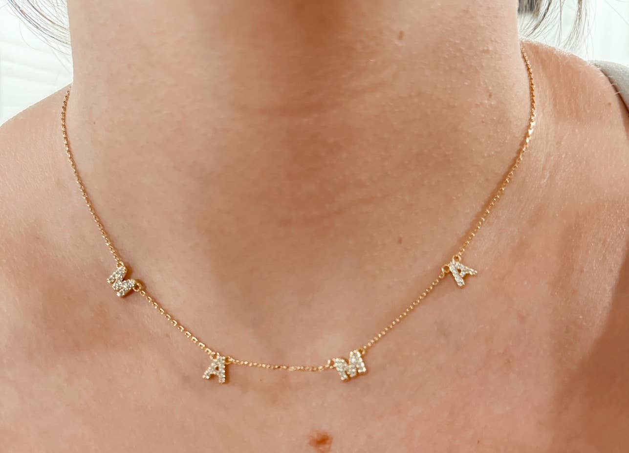 Very dainty and detailed necklace with cubic zirconia. Dainty and detailed. Such a personal and beautiful necklace! Dimensions: 16-inch chain with 3-inch extender. 18k gold plated brass, cubic zirconia Lead and Nickel free The perfect gift for Mother's Day or Birthdays! Made in China