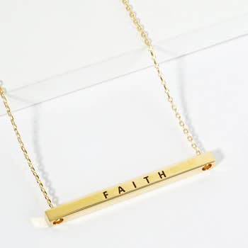 FR3348 THIS TOO SHALL PASS_3D Message Brass Bar Necklace