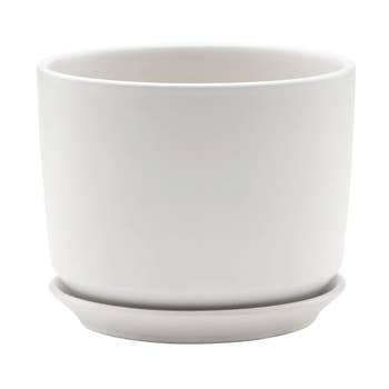- An entirely handmade and hand crafted design, some slight variations may be present - Comes ready to use with your plants right out of the box - This piece is made from hand finished ceramic materials - Formed with a round, straight side frame and has an inlet base - Comes with a smooth exterior in a white finish - Does not include drainage holes Dimensions: - X-Large: Dia: 6.5" x H: 6" Base: Dia: 4.25" - 2.5 lbs - Large: Dia: 5.75" x H: 5.75" x Base Dia: 4.5" - 2.1 lbs - Medium: Dia: 5" x H: 5" x Base Dia: 3.75" - 1.5 lbs - Small: Dia: 4.5" x H: 4.5" x Base Dia: 3.5" - 1.4 lbs Options: - X-Large: 5928WT - Large: 5929WT - Medium: 5930WT - Small: 5931WT