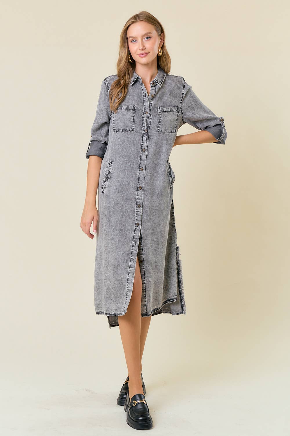 No reviews for FRAYED HEM DENIM SHIRT DRESSS yet.