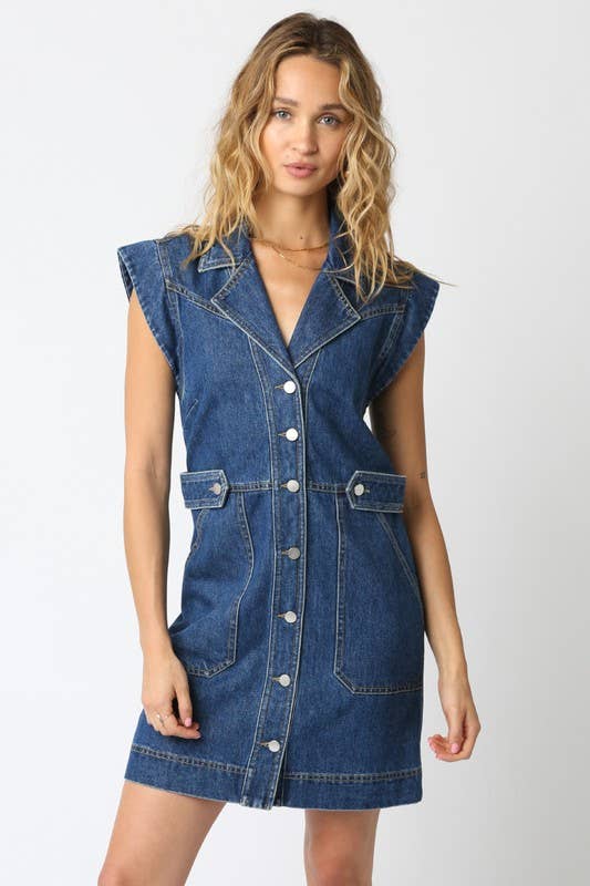 Pink Irene Wholesale - Wholesale Dress - Women's - FRAYED HEM DENIM SHIRT DRESSS1