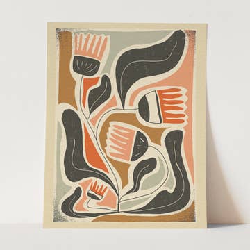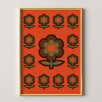 Wall Art Print Scandinavian Flower Pattern - Rust