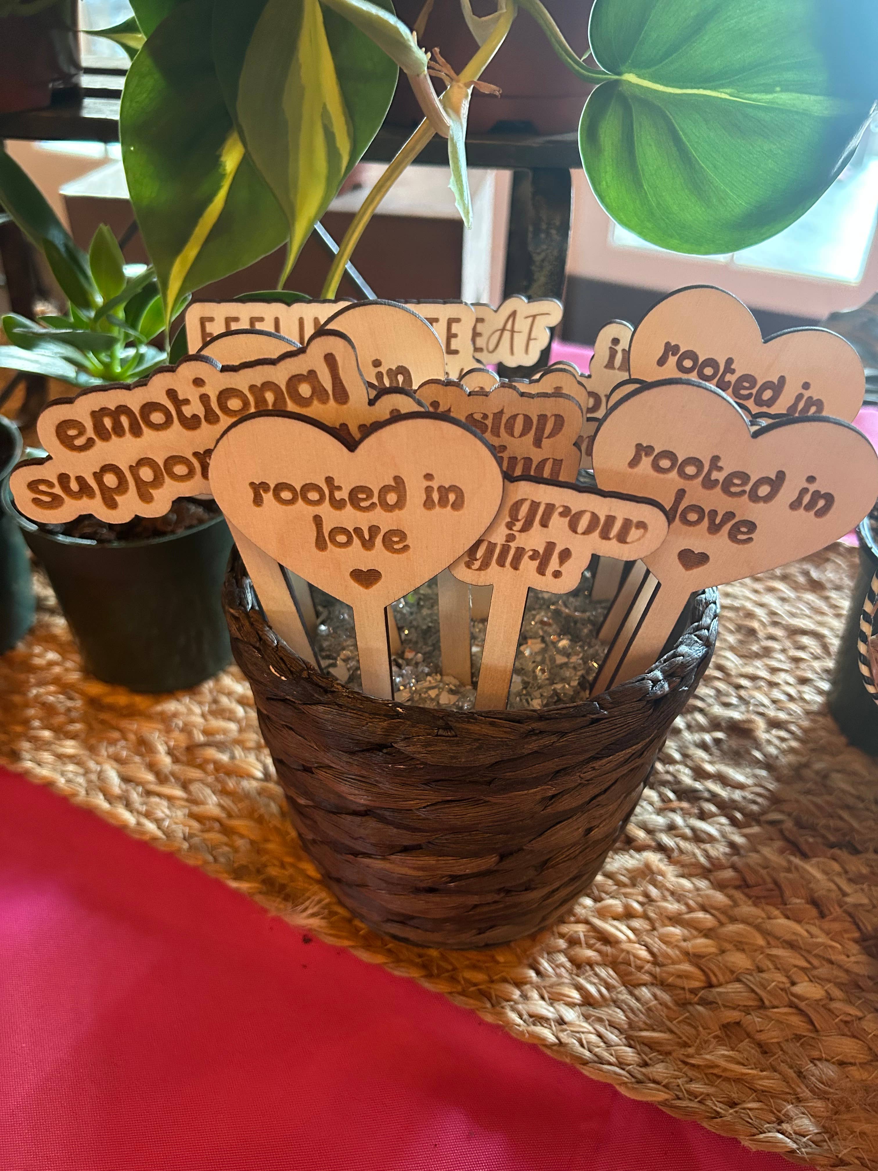 These laser-engraved retro-inspired funny wooden plant markers make an adorable addition to your potted indoor plants or garden. Give your plants personality by choosing your favorite plant sayings! These make for the best gift to any plant lover as well! ♥ Choose your favorite sayings from our drop down menu ♥ Made from Unfinished Baltic Birch PlyWood ♥ Approximate Dimensions: 5.25" tall and 1/8” thick (width depends on how long the saying you choose is) ♥ Each plant sign is one-of-a-kind, wood grain and color WILL VARY slightly on each one which adds to the natural beauty and uniqueness of the wood! Darkness of etching may also vary slightly. *There is no finish or stain applied to our plant markers, please note the lifespan of the stakes will vary depending on moisture levels, climate and soil type. *Please note every screen is different, colors may vary slightly from what you see on your screen.