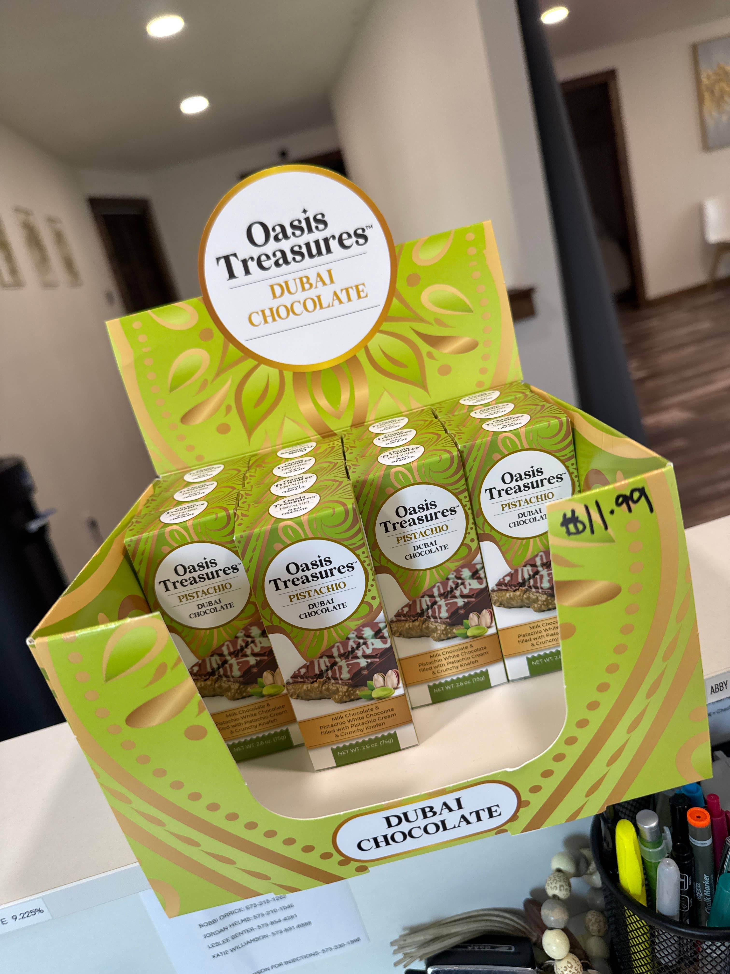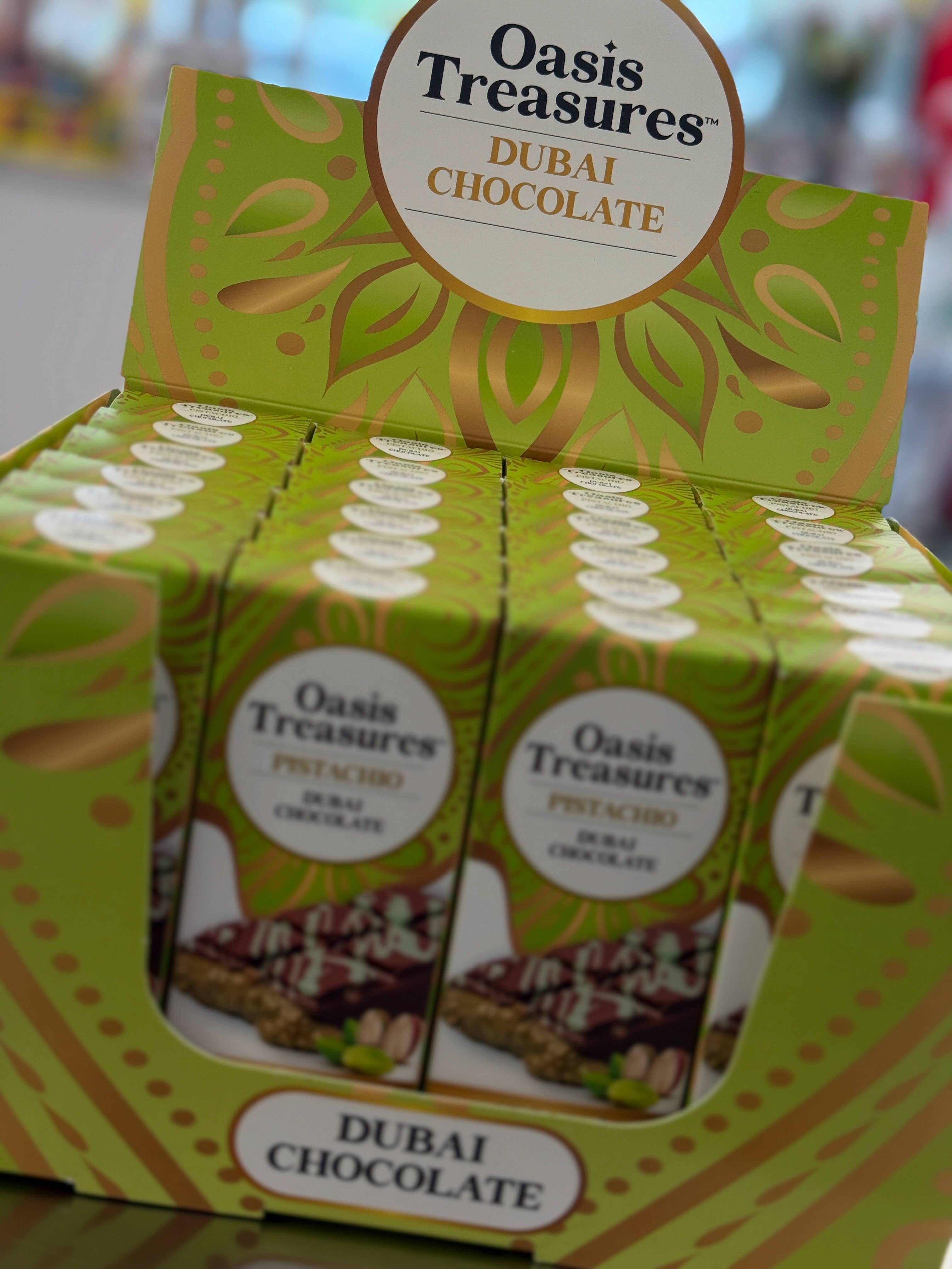🖤 Flash Sale – 50% Off! Limited Time Only 🖤 Made in U.S.A. 🇺🇸 This is your chance to grab America’s #1 Dubai Pistachio Chocolate Bar at the lowest price of the year. For a very limited time, we’re offering an exclusive 50% off with no order limits. Once this specially priced stock is gone — it’s gone. There are no restocks at this price. ✨ Why This Bar Is a Must-Have for Flash Sale The Oasis Treasures Dubai Pistachio Chocolate Bar is a viral sensation that continues to fly off shelves nationwide. Each bar is 70g (2.45 oz) of rich milk chocolate, creamy pistachio-infused white chocolate, and a crunchy, golden knafeh center — all handcrafted right here in the USA. Unlike others, this is the only Dubai-style pistachio chocolate bar made in the United States, with the scale, quality, and packaging to support high-volume retail demand. Proudly presented in shelf-ready PDQ display boxes, it’s built to move fast — just like this deal. 💥 Why Wholesale Buyers Love It: ✅ Made in the U.S.A. ✅ No U.S. Tariffs. ✅ Shelf-Ready PDQ Packaging (24 per case) ✅ Over 2.2 Million Bars Sold ✅ 15,000+ Repeat Customers ✅ Fast, Temperature-Controlled Shipping ✅ TikTok-Driven Demand + Premium Look & Feel ✅ Shelflife - 90-120 days ⚠️ Stock Is Limited. No Limits On Orders. First Come, First Served. Once our flash deal inventory is gone, regular pricing returns — and this offer will not be repeated.