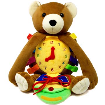 Everybody needs a buddy! This vivid, lime green backpack has a fun personality and infectious smile. Flip open the top to access a zipper compartment inside, which is perfect for carrying toys and books. Colorful buckles create a tactile rainbow on the sides and the straps are adorned with an eye-catching mix of colors, shapes, and numbers. Features • 12 child-friendly buckles • Embroidered shapes and numbers • Zipper and snap pocket • Size: 11" x 8"; 10 ounces; Adjustable straps