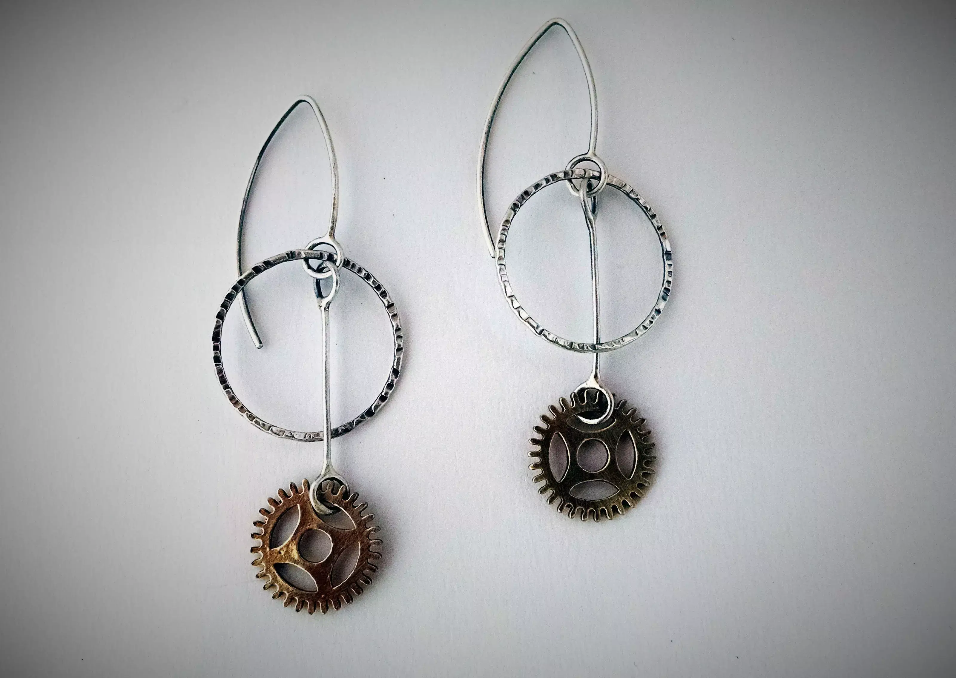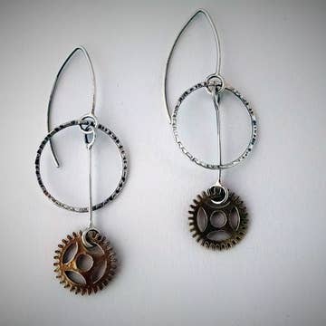 silver and brass plated gears on surgical earwire 1.50"