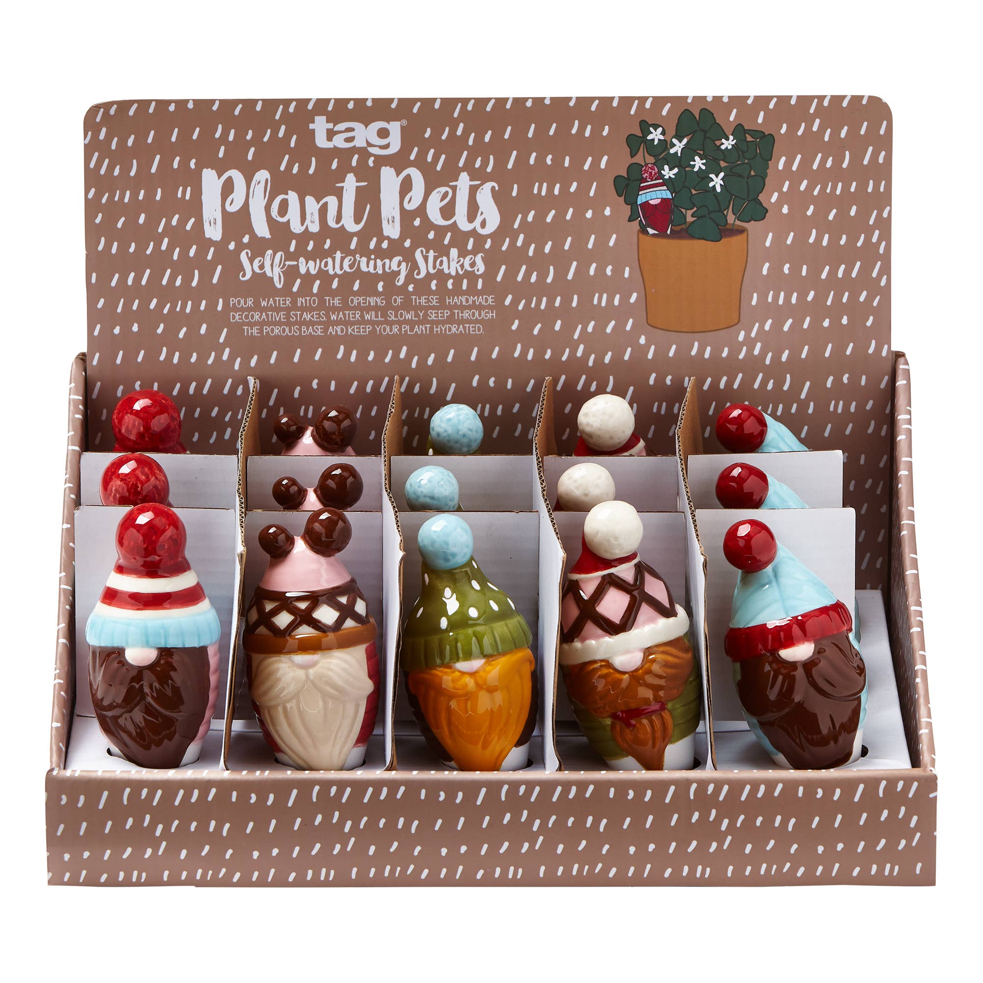 Meet gnorbit, valter, thor, oskar, and hans! These playful gnome salt and pepper shakers are meant to be mixed-and-matched! They are sure to bring joy to anyone's table and strike up a conversation. Assortment includes 3 each of 5 designs. Made from hand painted sculpted earthenware, all pieces include a glossy finish and rubber stopper to secure spices. Dimension: 3.75 Inch h x 1.8 Inch l x 1.8 Inch w. Material: earthenware. **Universal salt & pepper shakers were designed to allow the user to mix and match their selection --3-hole option was selected for each design
