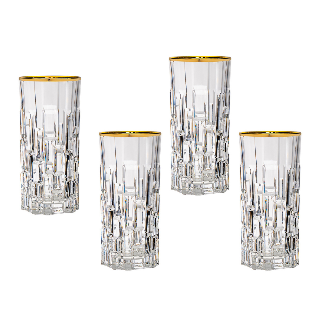"Where Gold Speaks, Every Tongue is Silent." (Italian Proverb) Our Vetro Gold Collection has been known to leave guests speechless. Florentine master artisans hand paint 24-karat gold highlights on intricate hand etched designs. The results are nothing short of extraordinary. One of our most popular collections. Hand made in Tuscany. Vetro Gold is popular in the entertainment world too, often featured in major movies and television programs. Two recent examples are "Downtown Abbey: A New Era" and "The Regime." Dimensions: Holds 9 ounces 3.5 inches tall 3.25 inches diameter Care: Hand wash only.