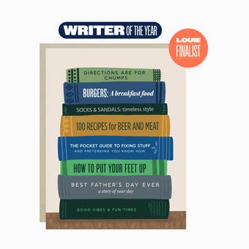 Celebrate Dad with a stack of laughs this Father’s Day! This funny and clever greeting card features a stack of illustrated books with hilariously relatable titles, making it the perfect way to honor his unique dad wisdom (and humor). A great choice for anyone looking for funny Father’s Day cards, dad humor, or a playful way to say “Happy Father’s Day!” Book Titles Include: Directions are for Chumps Burgers: A Breakfast Food Socks & Sandals: timeless style 100 Recipes for Beer and Meat The Pocket Guide to Fixing Stuff and pretending you know how How to Put Your Feet Up Best Father's Day Ever - a story of your day Good Vibes & Fun Times Barone & Co. is proud to announce that this Father's Day greeting card has been selected as a Louie Award Finalist for the category, Writer of the Year, by the Greeting Card Association!