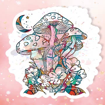 Psychedelic Mushrooms & Moon Sticker