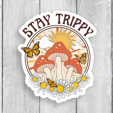 Stick our Psychedelic Mushrooms & Moon Sticker anywhere, and you'll have a one-way ticket to a far-out cosmic journey, man Outside Window Sticker 5.75" Tall