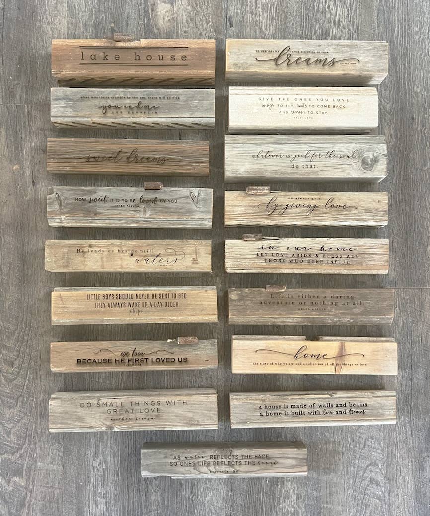 We love their product of repurposing vintage parts and pieces that might otherwise be discarded. Their quotes are awesome. So hard to decide which ones to bring in as they all speak to you. Customers love the product!