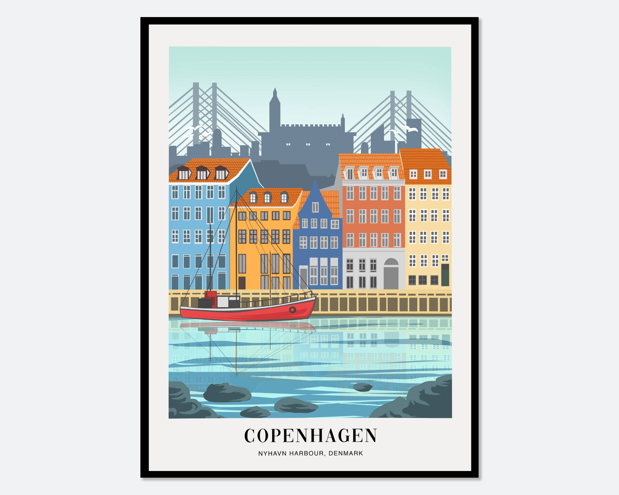 This high quality print measures 11 x 14 inches. The frame is not included. There is no need for custom framing. Premade frames are easy to find for this standard size. The print ships sealed in a clear cello bag along with a sturdy backer board. This design is also available as a magnet, greeting card, postcard and as a large format canvas. Made in USA.