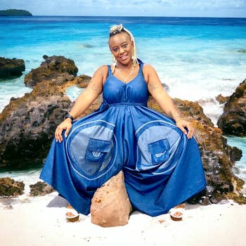 African Print Romper with a long sleeve. Made with 100% cotton in high quality, back buttoned. 33" Long. Models are wearing a US Size 10 & 16. Made in Nigeria. Hand wash in cold water.