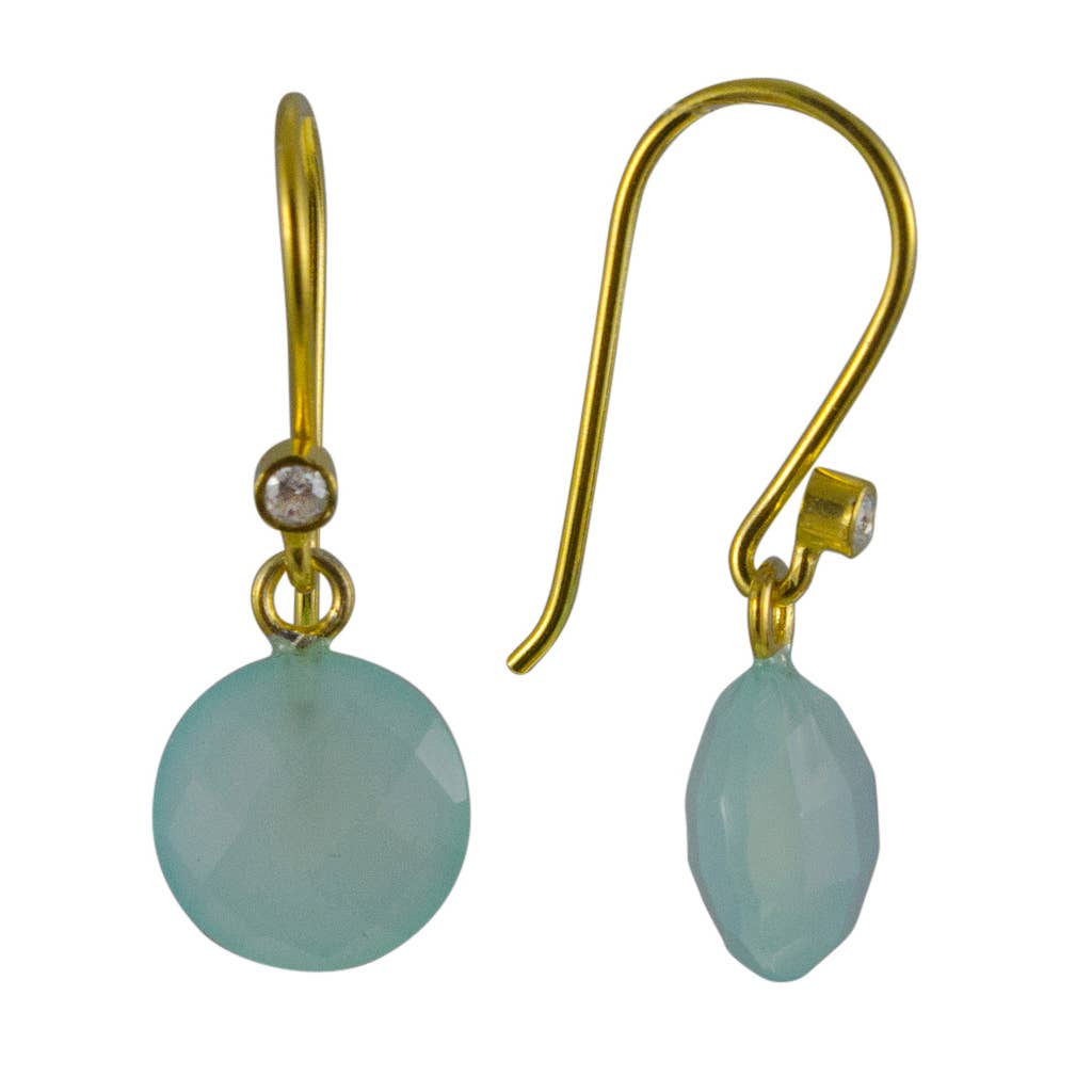 These faceted Amazonite stones catch the light in all directions. First discovered near the Amazon river, amazonite is said to be a stone of honor and integrity. Linked circle detail and ear wire in your choice of sterling silver, or 14K gold fill. Approximately 1 1/2 inch drop.