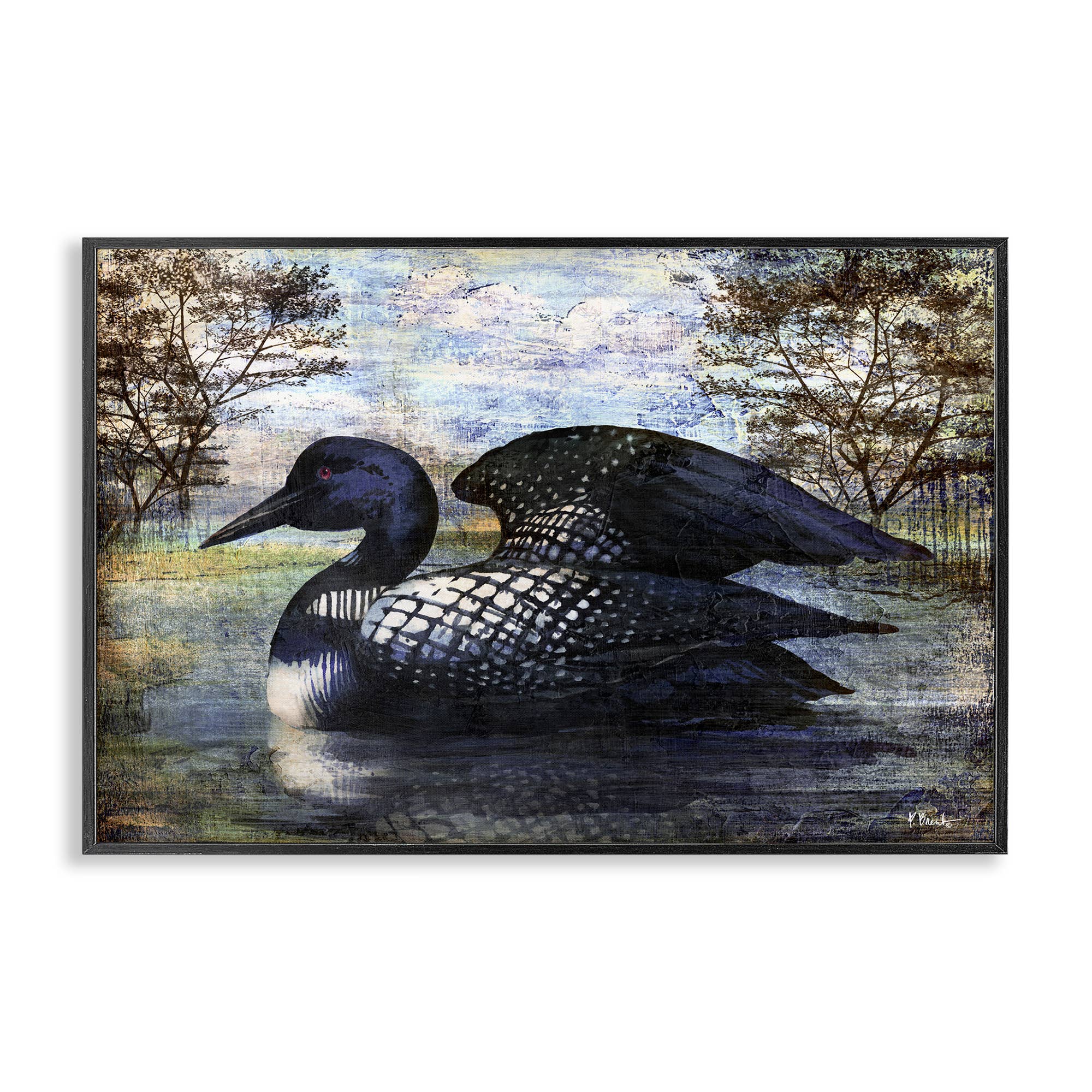 NORTHLAND LOON FRM 9X9 FRAMED GLASS ART - STEVENS
