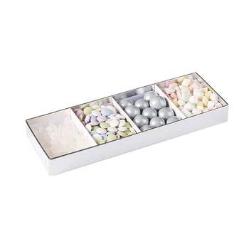 ""With Love"" GIFT BOX A sweet Angel with sparkling gold glitter wings wishes you a, ""Happy Valentines Day"" Gorgeous pink hand glittered roses adorn two beautiful swans. Each box is hand glittered by the artisan. Great for filling with your own special treats! Suggestions include candies, chocolates, jewelry, soaps, etc. Gift box comes with a jewelry foam insert, a clear insert bag to fill with your own goodies and a clear bag and satin ribbon for gifting. Box size is 5.25 x 3.75 x 0.875 inches *CANDY & SOAPS NOT INCLUDED. SUGGESTIONS ONLY. *BOXES ARE SOLD EMPTY FOR ADDING YOUR OWN TREATS.