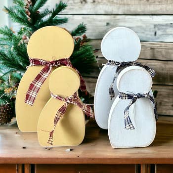 These gifts are cut from 1/4" wood. They are the perfect holiday accent in any style of home decor. Fold flat for easy storage! Sizes: 10" tall, 9" tall, 7" tall, and 4" tall *Wood may have knots. This is a natural occurrence in wood grain.