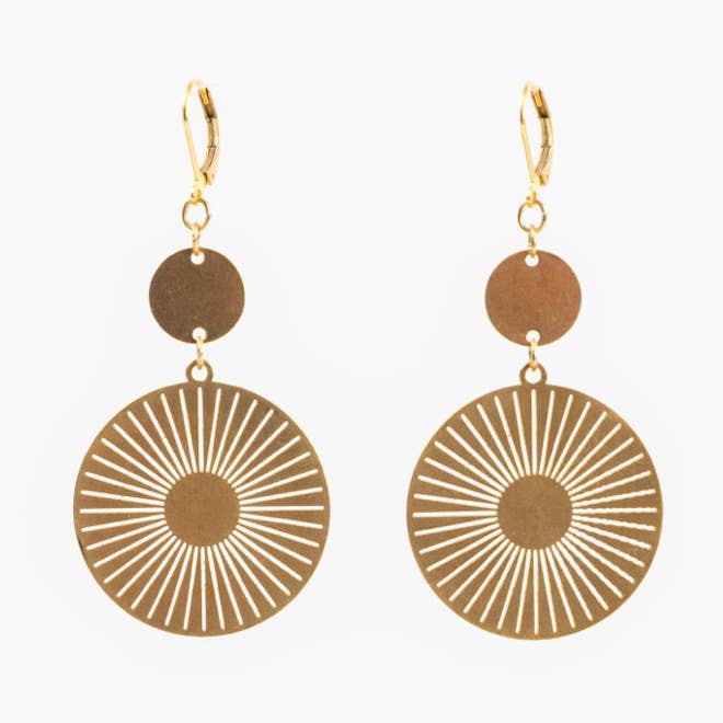 Add a pop of geometric shine to your look with this triple stack of triangles. 1.5" L Gold or silver plated Leverback closures The triple triangle earrings are handmade in a fair trade workshop in Guatemala.