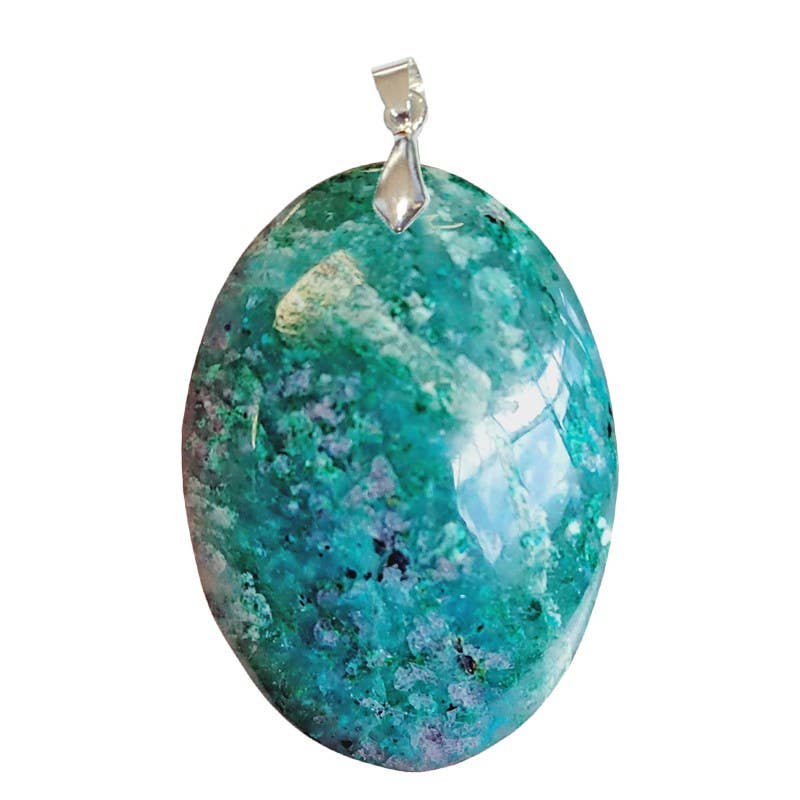 SKU: PCHRG30 Made in Madagascar Color: Green Material: Stone Stone Type: Chrysocolla Weight: 20 g (0.71 oz) Dimensions: 3.5 x 3 x 0.8 cm (1.4 x 1.2 x 0.3 in)