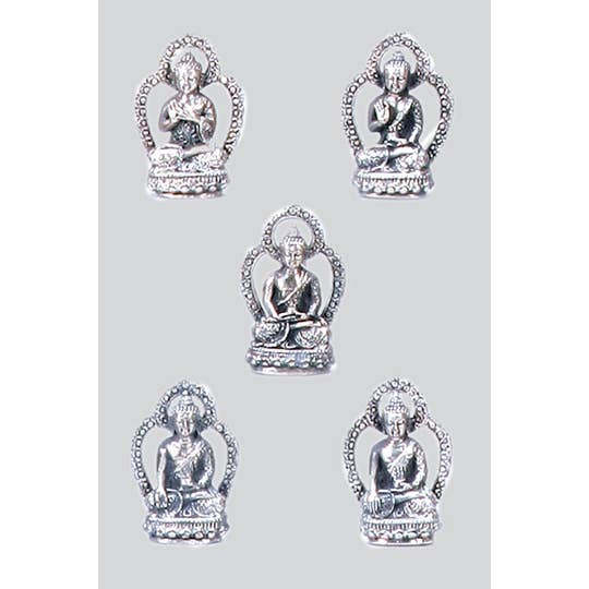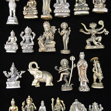 Small brass statuettes depicting the gods and deities of Hindu and Buddhist faiths including Ganesh, Buddha, Quanyin, Hannuman and Tara. These highly-detailed brass deity statuettes and pendants depicting traditional deities are shipped to you in assorted silver and gold toned brass and range in size from 1 to 1¾ inches. Let us know how many of each you would like and we will select an assortment of our best sellers for you.