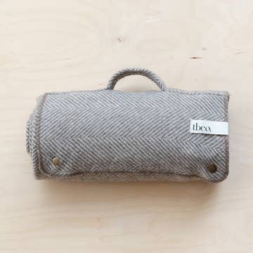 Recycled Wool Small Picnic Blanket in Natural Herringbone