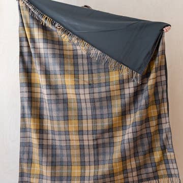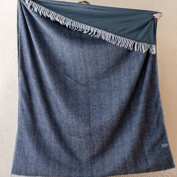 Recycled Wool Picnic Blanket in Navy Herringbone
