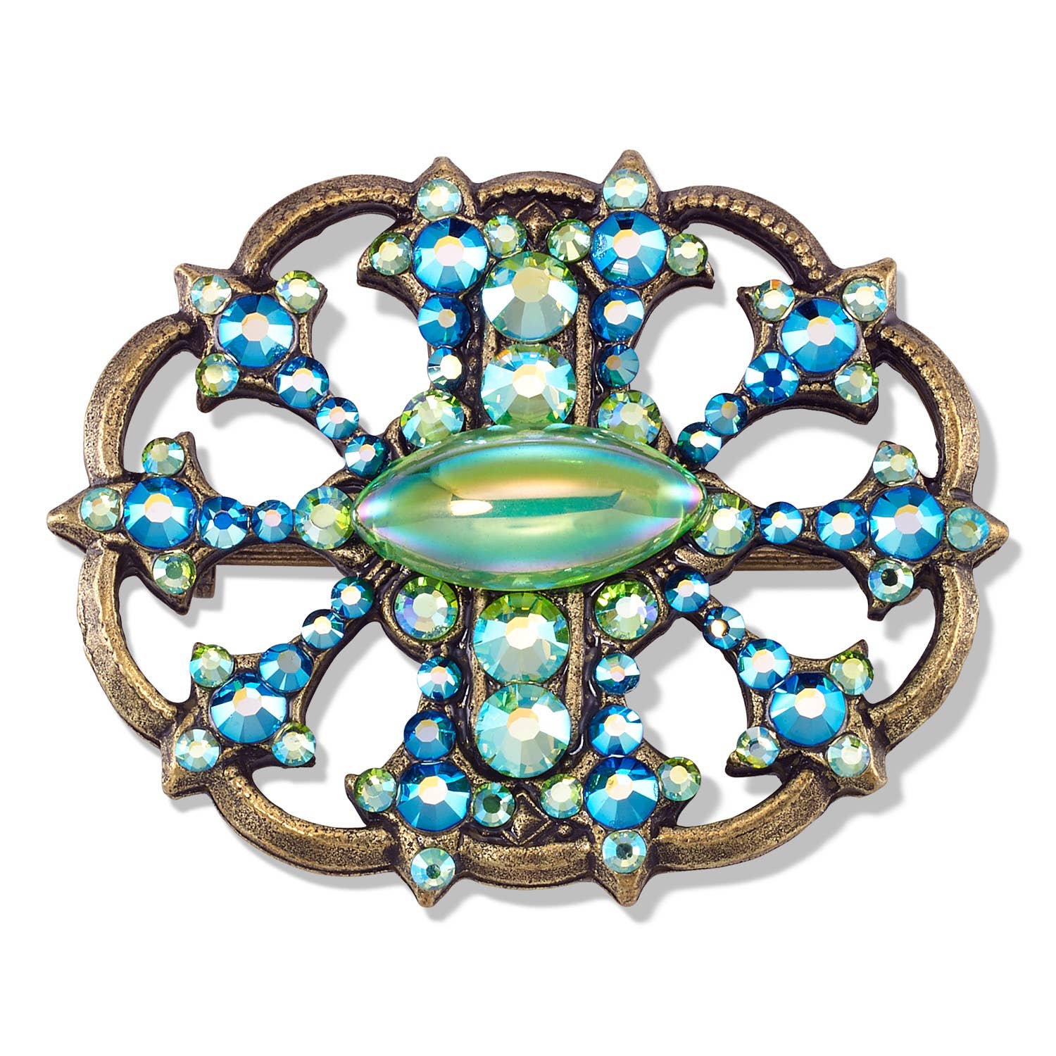 Hand-crafted 25mm round tumbleweed stone inserted into an antique brass brooch. Base metals are lead-free, nickel-free, and cadmium-free. Stones available in all 5 colors, or assorted. Packaging includes a small linen drawstring bag and care card. Great accessory for a favorite hat or scarf, or jacket.