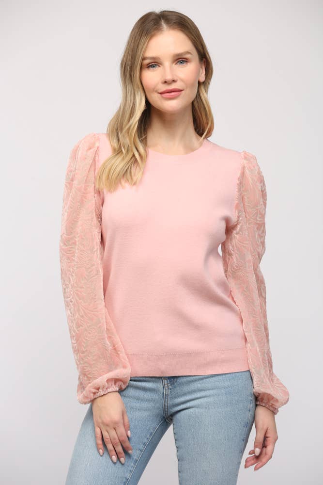 Sioni Crew Neck Embroidery Sleeve Sweater Top