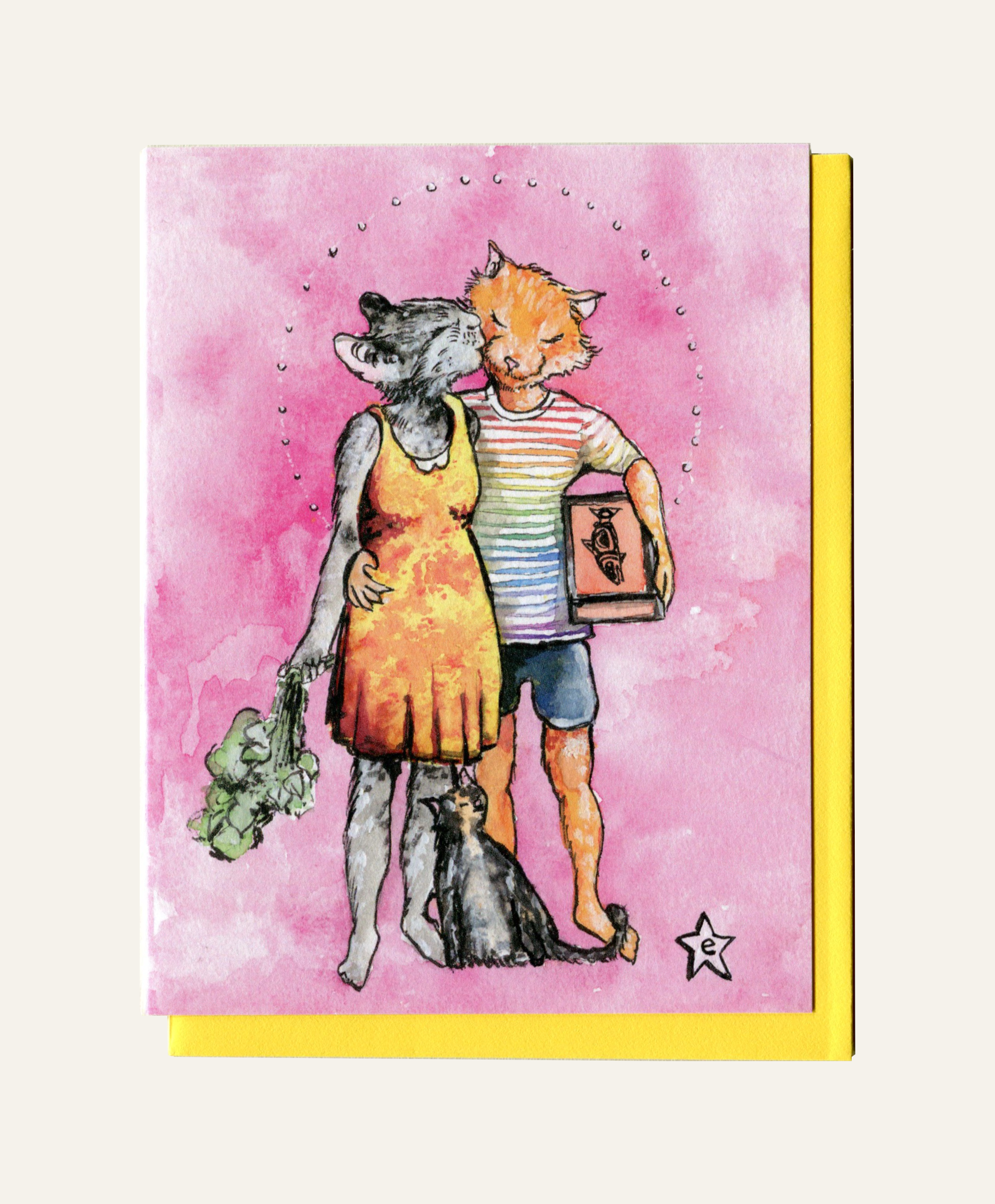 This artwork is a part of my Affectionate Animal Series, featuring artwork based on a vintage photograph by Man Ray. You can buy this illustration and send your loved one a Queer Holiday Card to celebrate Pride year round! Notecard Details: Send your loved one a queer holiday card. Folded A2 cards (5.5"x4.25"), blank interior, title on back, red envelope, and digitally printed in small batches using 100% wind power.