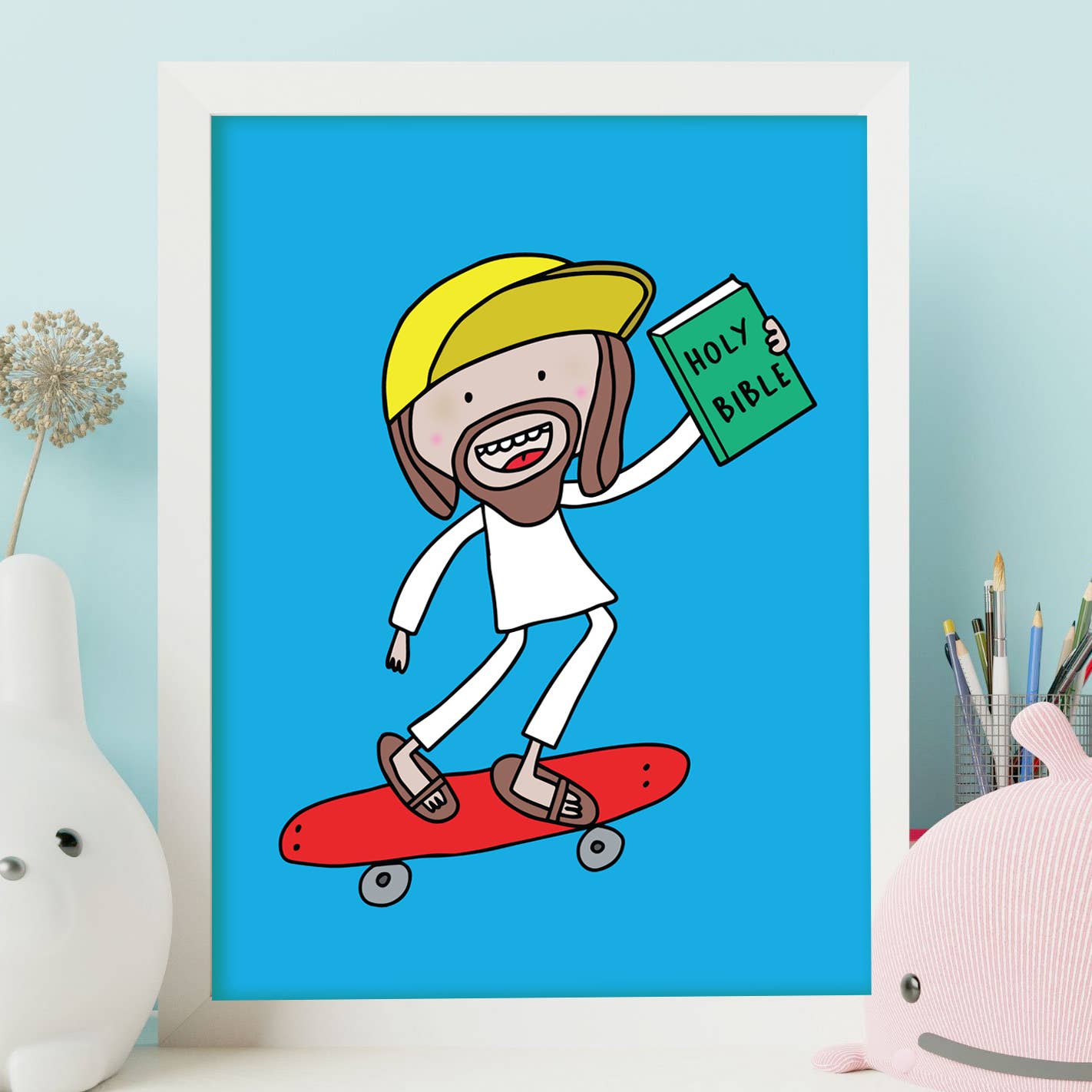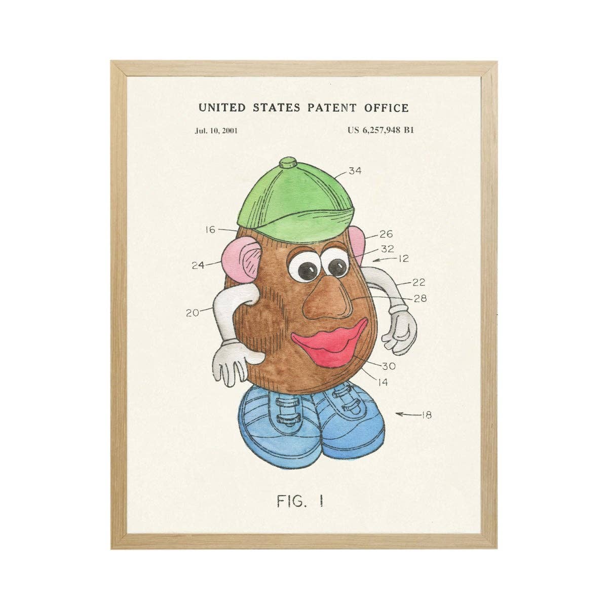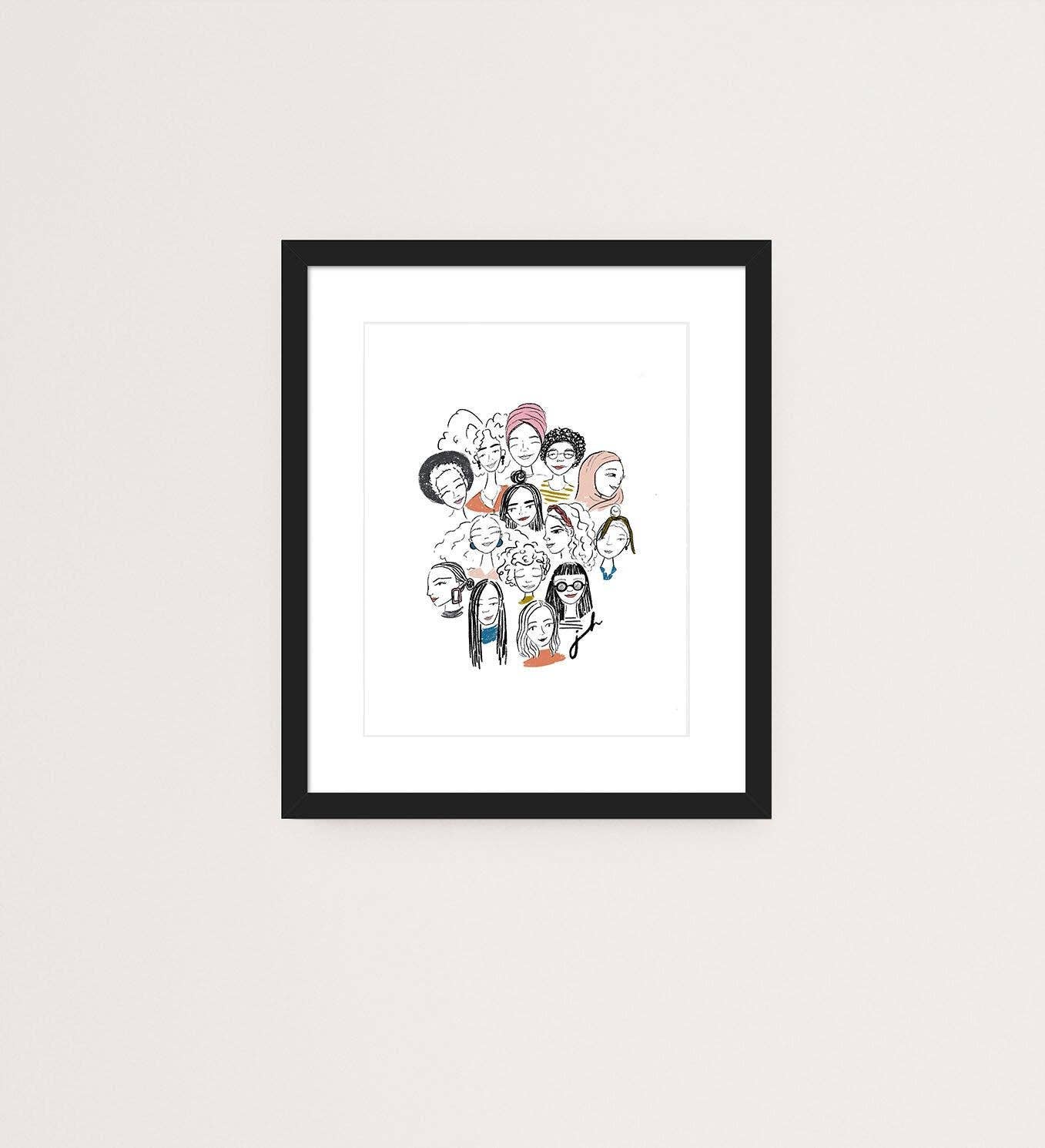 8"x10". Artwork is professionally printed on premium 100lb, acid free smooth finish paper. Art prints are individually packed in resealable cellophane sleeves with a white backing board. The frame is not included.