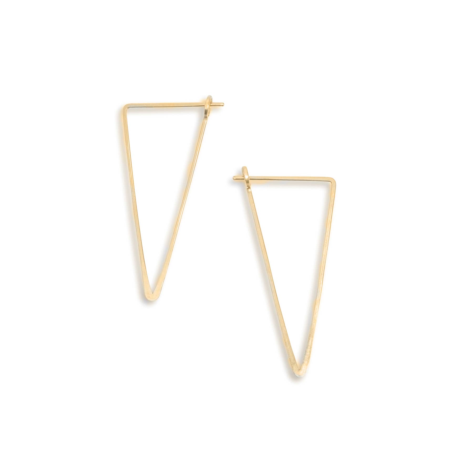 These long architectural triangles are inspired by the strong lines of Art Deco design. Sophisticated and chic, you'll definitely get compliments. Size: approximately 5/8" wide by just over 2.5" tall Leverback earwires Packaging: Letterpress Earring Card All components are sterling silver and gold filled, nickel free Handmade in our Nashville TN Studio by an all-woman team wire jewelry | hammered jewelry | classic handmade jewelry | made in Tennessee | sterling silver | gold filled | demi-fine | handcrafted | artisan jewelry | dainty jewelry | minimalist jewelry | silver earrings | gold earrings