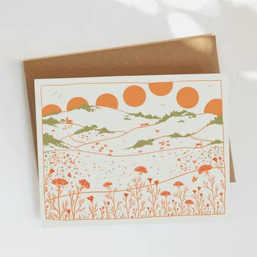 Delight your customers with our vibrant, illustrated greeting cards, perfect for sending meaningful messages and love notes. Crafted with care on 100% Post-Consumer Waste, FSC-certified stock in a solar/wind-powered facility, and printed with vegetable and algae inks, our cards are an earth-friendly choice for retailers. Each card features a blank interior and includes a Kraft envelope, providing a lovely canvas for your customers' good wishes, thoughtful notes, and sweet sentiments. Features: - A2 (4.25” x 5.5”) - Kraft envelope included - Blank inside - Printed with vegetable and algae inks - Produced locally in a solar/wind powered facility - Printed on 100% Post-Consumer Waste, FSC-certified stock