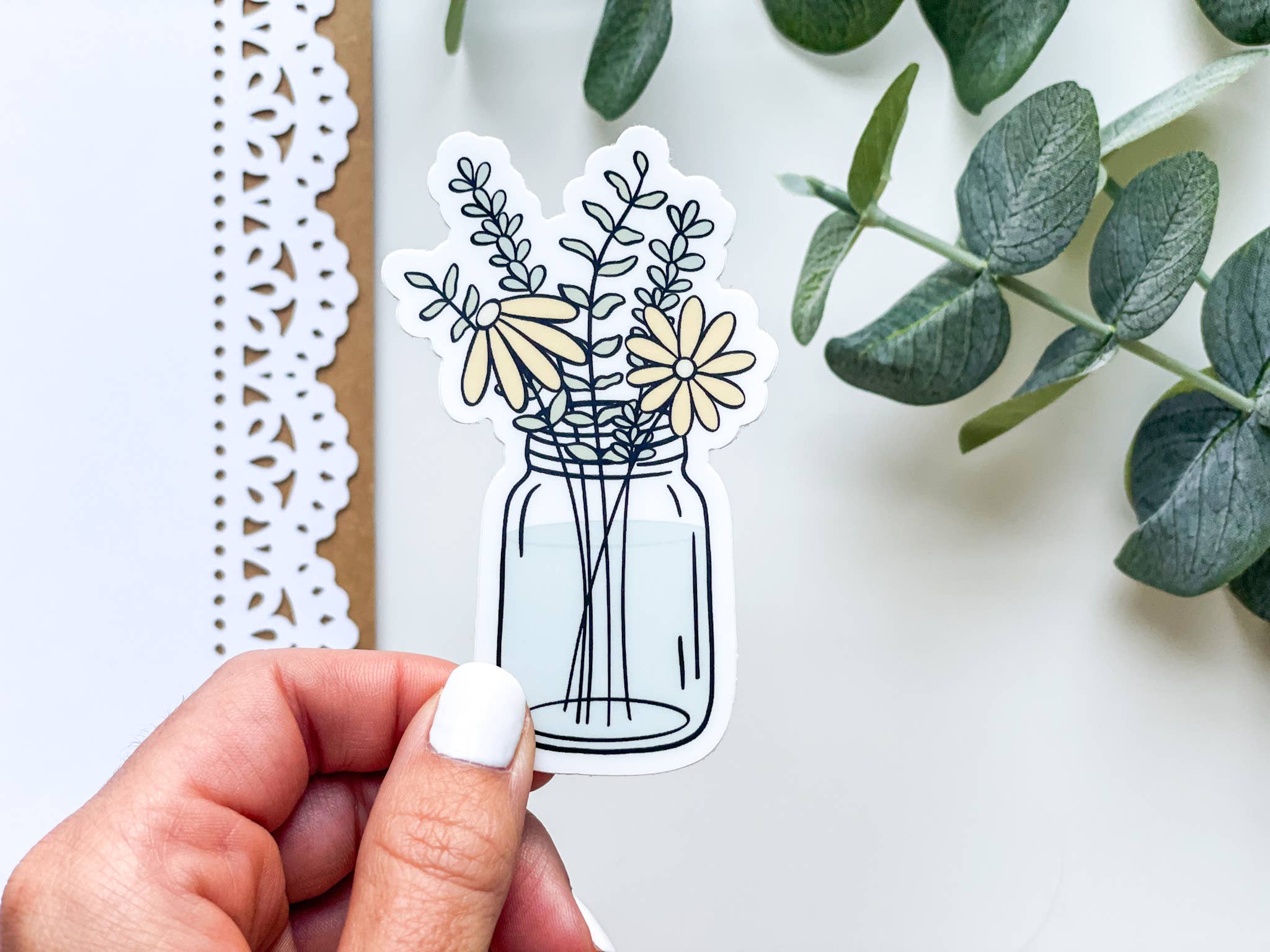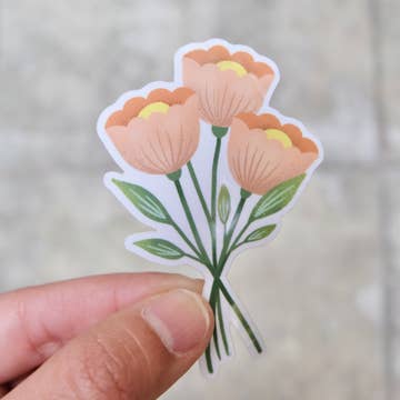 Clear Bouquet in Blue and White Vase Sticker, 2.7inx3.25 in.
